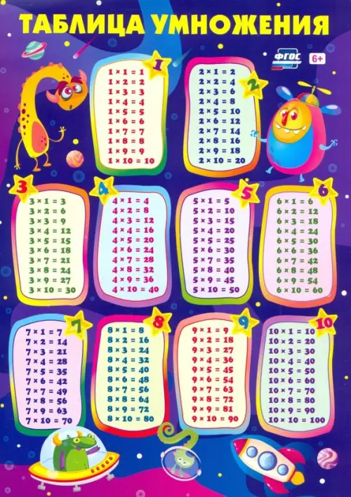 Учебный плакат "Таблица умножения" - прекрасный помощник ученикам в освоении основ математики. Таблица-плакат на стене или рабочем столе ученика - это всегда успешно выполненные уроки. Такой плакат должен быть в каждом учебном кабинете.
