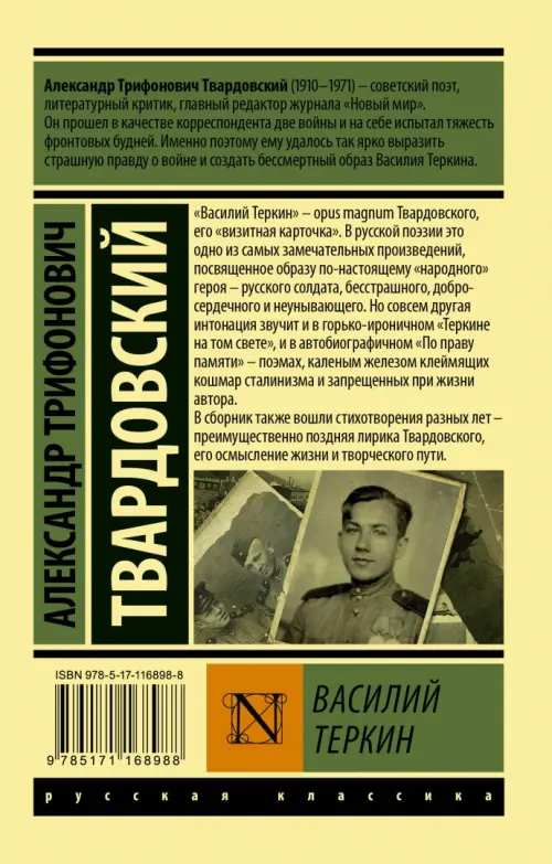 110 лет со дня рождения Александра ТвардовскогоЕсли вы обнаружили ошибку в описании товара «Василий Теркин» (авторы: Твардовский Александр Трифонович), то выделите её мышкой и нажмите Ctrl+Enter. Спасибо, что помогаете нам стать лучше!