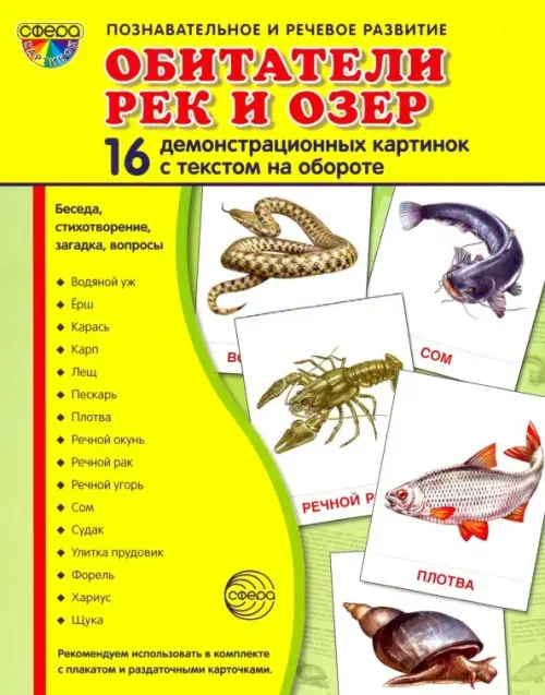 Демонстрационные картинки "Обитатели рек и озер" (16 картинок)