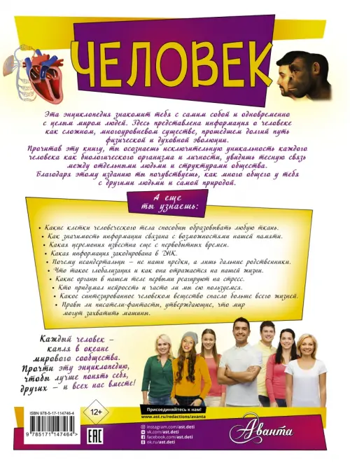 Почему мы, люди, именно такие? Откуда мы появились и куда идем? Насколько много между нами общего? Может ли наше тело защитить себя от заболеваний? Действительно ли существует душа? Эти важнейшие вопросы волнуют человечество с незапамятных времен. Если они интересны и тебе, ответы - в данной энциклопедии. На ее страницах содержится всесторонняя информация о человеке, которая дает богатую пищу для размышлений.