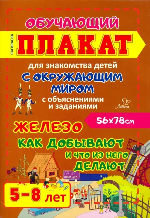 Железо. Как добывают и что из него делают. Обучающий плакат-раскраска для детей 5-8 лет