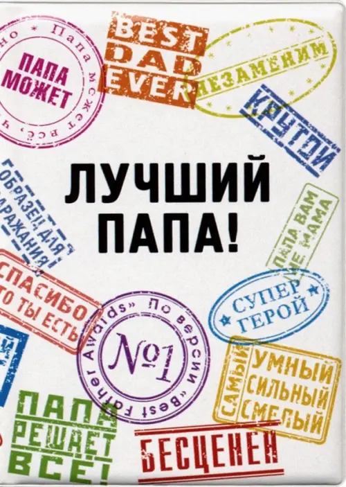 Обложка на паспорт с печатями "ЛУЧШИЙ ПАПА", пластик