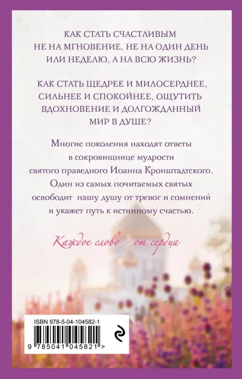 Книга содержит мудрые высказывания на тему радости, любви, утешения и надежды одного из самых почитаемых православных святых — святого праведного Иоанна Кронштадтского. Добрые и искренние слова, открытое сердце святого, его всеобъемлющая любовь исцелят душевные раны и укажут верное направление на жизненном пути.