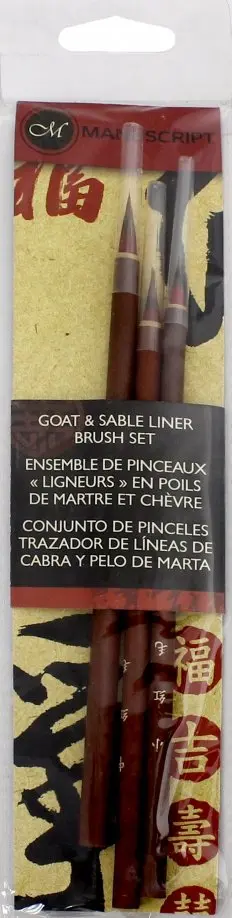 Набор кистей-лайнеров Manuscript "Chinese Calligraphy", коза и соболь, 3 штуки