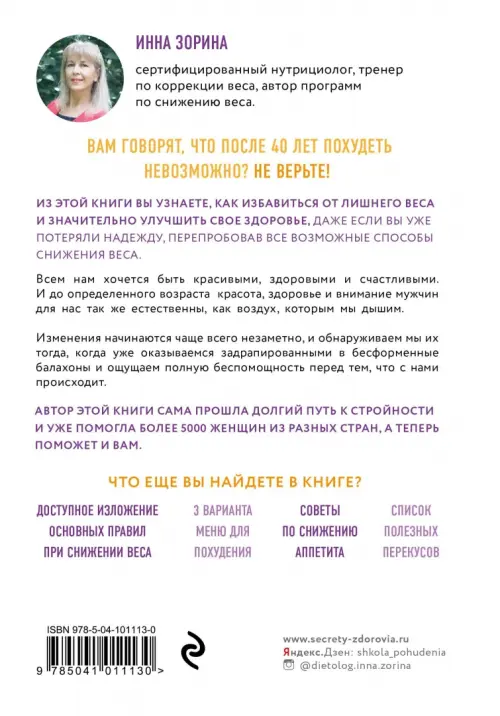 В этой книге она расскажет вам, какие привычки нужно изменить, чтобы перестать набирать вес, как правильно замотивировать себя на похудение и, главное, как удерживать достигнутый результат без вреда для здоровья и психики.
