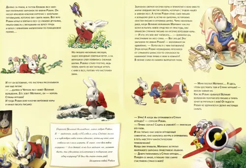 Здесь есть и история, но почти вся книга – красочные разворотные иллюстрации, предназначенные для долгого рассматривания и эстетического удовольствия. Сказочная страна, игрушки, лес: на большом формате выглядят отлично. Хороший вариант подарка для ребенка 2-4 лет.