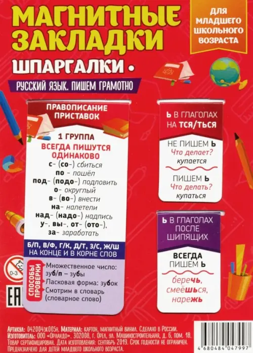 Набор магнитных закладок. Русский язык. Пишем грамотно. Часть 2
