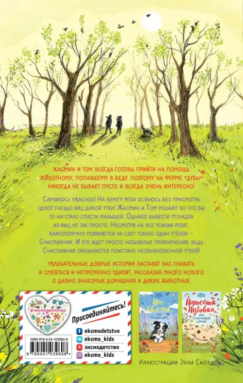 Жасмин и Том – ответственные дети. Не то что их одноклассница Белла Бредли, из-за которой целый выводок яиц дикой утки потерял маму. Ребята решают доказать, что могу сами вывести этих малышей, и даже добывают для этого настоящий инкубатор. В итоге на ферме "Дубы" появляется очень умный и симпатичный утёнок по имени Счастливчик. Они с Жасмин души друг в друге не чают, и с каждым днём сообразительней птенец всё больше и больше удивляет свою хозяйку!