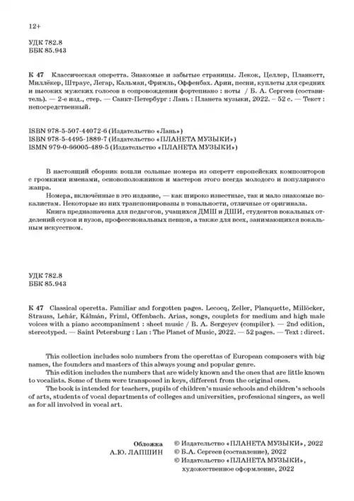 В настоящий сборник вошли сольные номера из оперетт европейских композиторов с громкими именами, основоположников и мастеров этого всегда молодого и популярного жанра. Номера, включённые в это издание, — как широко известные, так и мало знакомые вокалистам. Некоторые из них транспонированы в тональности, отличные от оригинала.