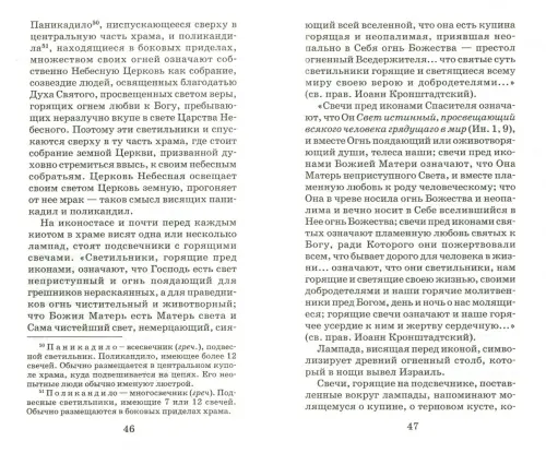 В книге рассказывается о предметах и действиях, которые требуются для проведения богослужения в православном храме: просфоре, артосе, святой воде, лампадах, свечах, каждении, а также о наиболее распространенных среди верующих благочестивых традициях и обрядах: приготовлении куличей, освящении имущества и т.д.