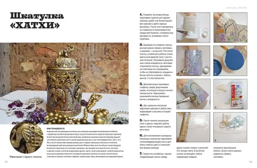 Декупаж – давно и хорошо известная техника декора. Миллионы салфеток были наклеены на самые разные предметы, превратив их в настоящие произведения искусства. Настало время двигаться дальше, а именно: учиться имитировать различные поверхности. Дерево, камень, ткани, разные виды и состояния металла, кожи, даже коралл, – пожалуй, нет такой поверхности, которую нельзя было бы повторить при помощи современных материалов для творчества. Как это сделать, расскажут мастера легендарной студии ?Серебряный лебедь? Галина Вакула и Леля Раевская, чьи работы вдохновляют и изменяют будущее декупажа.