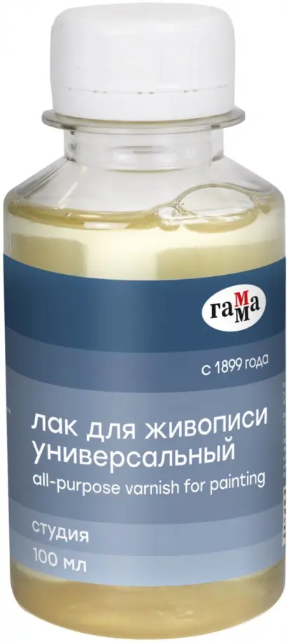 Универсальный лак для художественно-живописных работ. Предохраняет красочный слой от воздействия внешней среды, пыли, влаги. Создает прочную прозрачную обратимую пленку, стойкую к воде. Усиливает блеск и яркость красок. Подходит для покрытия картин, выполненных акриловыми красками, и разбавления масляных, пентамасляных и алкидных красок.