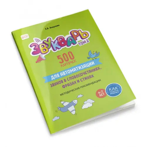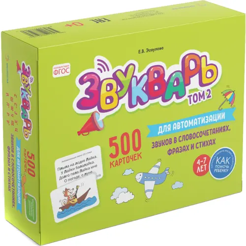 В учебно–методическом пособии «Звукварь. Том 2: 500 карточек для автоматизации звуков в словосочетаниях, фразах и стихах» представлены обобщенные материалы из опыта работы по развитию речи дошкольников учителя–логопеда высшей категории, кандидата психологических наук Эсауловой Е.В.