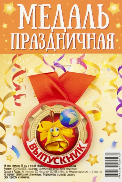 Если вы обнаружили ошибку в описании товара «Медаль закатная с лентой "Выпускник", 56 мм», то выделите её мышкой и нажмите Ctrl+Enter. Спасибо, что помогаете нам стать лучше!