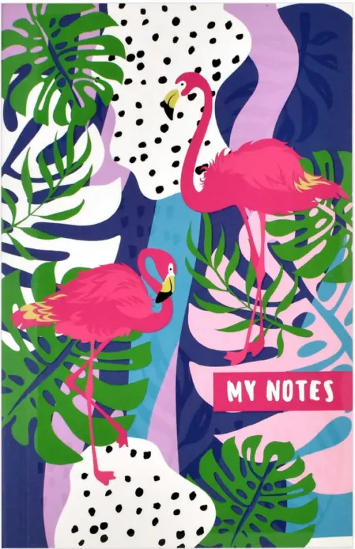 Блокнот для заметок, списка дел и покупок. Мои записи. Фламинго и листья, 96 листов