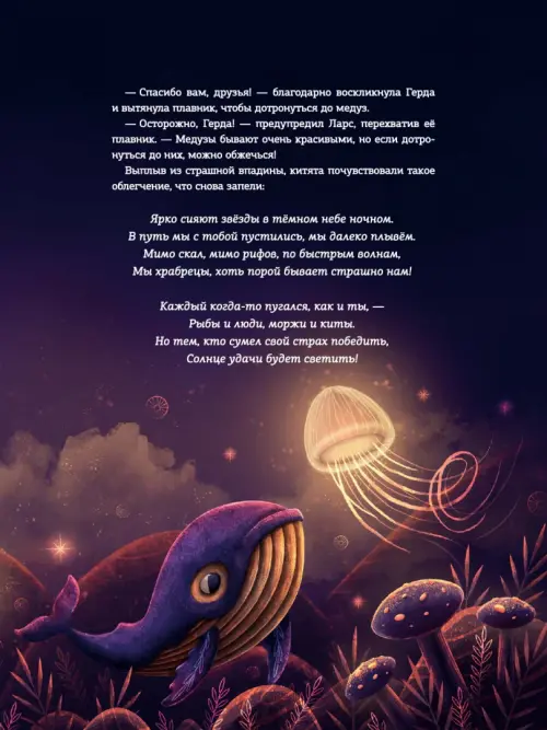 Продолжение супербестселлера, хита редакции «Вилли Винки» – истории о маленьком китёнке Герде! Герда живет в уютном заливе вместе с братом Ларсом. Все время они напевают песенку, которая в детстве пела им мама… Но однажды старая китиха Лисбет рассказывает им, что колыбельная не закончена. Брат и сестра решают отправиться в невероятное путешествие туда, где рождается северное сияние – ведь только там можно обрести утраченные строки из песни. По пути они встретят разных обитателей моря – хмурых угрей, беззаботных дельфинов, загадочных медуз, попадут в шторм и поймут, как много ещё неизвестного приготовил большой мир для двух маленьких китят. Какие открытия ждут Герду и Ларса? Найдут ли они забытую колыбельную своей матери? И что поможет им победить любые страхи? Это невероятно красивая сказка об удивительном мире вокруг нас, где все живые существа – части одного целого.