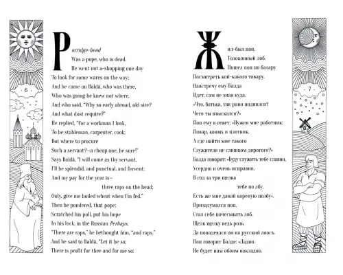 Сборник сказок А.С. Пушкина представляет собой билингву: оригинальный текст на русском языке дополнен параллельным переводом на английский. В книгу вошли пять произведений: «Сказка о попе и о работнике его Балде», «Сказка о царе Салтане», «Сказка о рыбаке и рыбке», «Сказка о мертвой царевне и о семи богатырях» и «Сказка о золотом петушке». Стихотворный перевод выполнен Оливером Элтоном, британским литературоведом, критиком и переводчиком с русского и исландского языков. Книга адресована школьникам, но будет интересна всем, кто изучает английский язык, хочет улучшить навыки чтения и расширить свой словарный запас, а также тем, кому чтение произведений А.С. Пушкина доставляет удовольствие и радость.