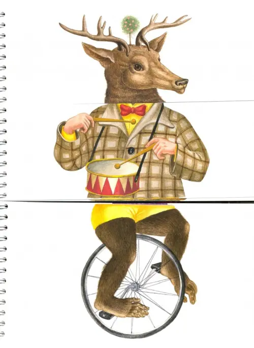 Эту необычную книгу, книгу-игру, которую придумала художница Елена Новикова, нужно не читать, а листать и разглядывать. 32 рисунка с удивительными и забавными персонажами разрезаны каждый на три части. Теперь, если полистать книжку, они превращаются в 32786 еще более удивительных и смешных героев!