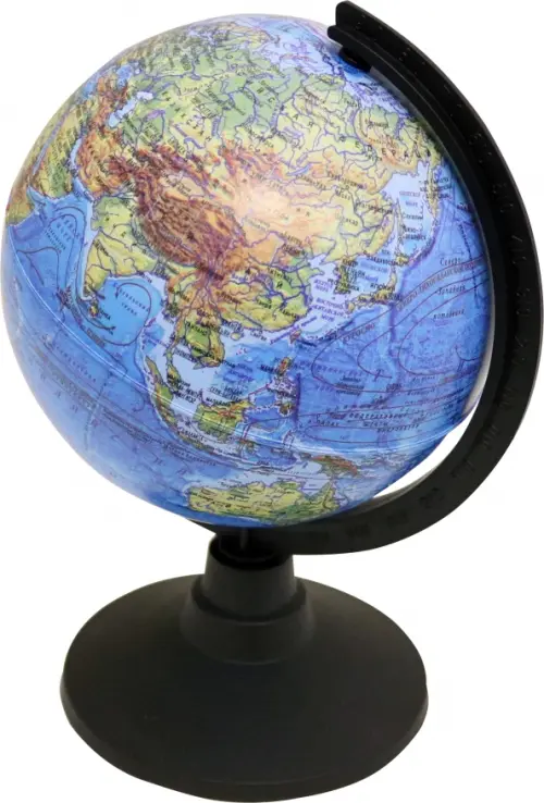 С этим глобусом уроки географии станут интереснее! Ребенок будет легче выполнять домашние задания, ведь данное учебное пособие хорошо подойдет для изучения континентов и акваторий нашей планеты. На поверхность глобуса нанесена подробная физическая карта Земли с учетом мельчайших подробностей. Подробная прорисовка деталей, четкие надписи на русском языке, яркие цвета и компактная форма такой глобус впишется в любую детскую комнату. Прочная подставка легко разбирается и собирается. Глобус также прекрасно подойдет для учебных учреждений и станет необычным подарком.