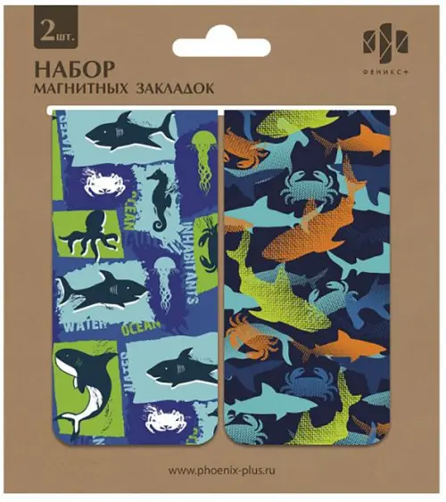 Набор магнитных закладок. для книг, Акулы, 2 штуки