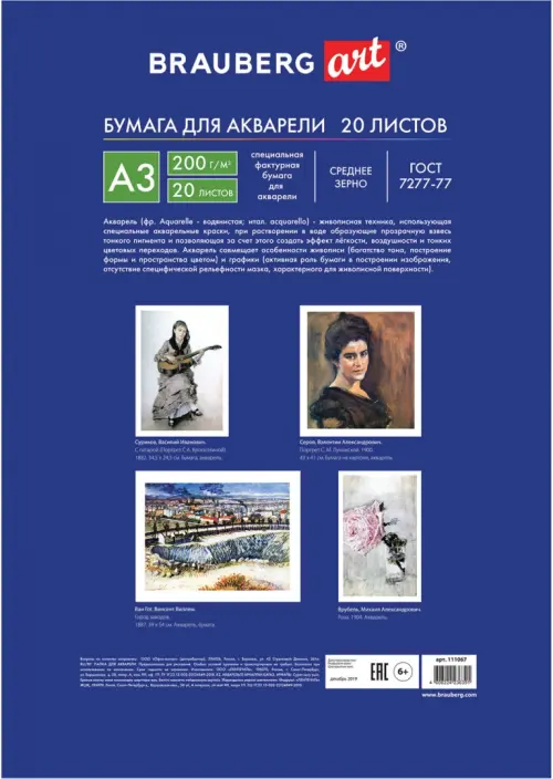 Внутренний блок: акварельная бумага по ГОСТ 7277-77.
