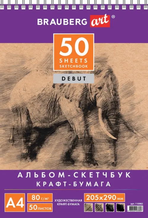 Скетчбук "Brauberg Art. Debut", крафт-бумага, А4 (205х290 мм), 50 листов