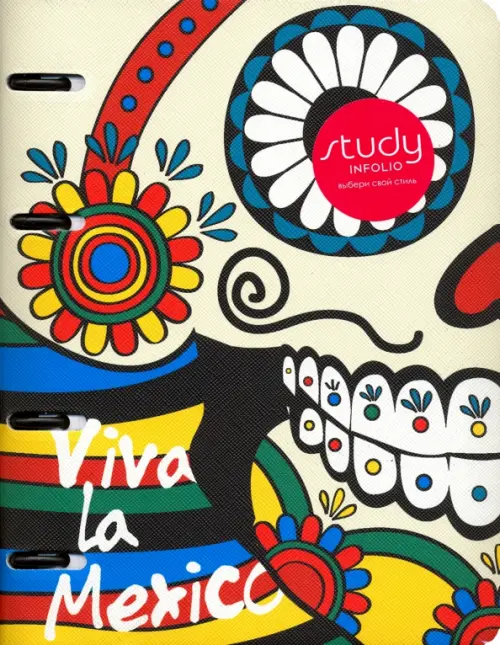 Тетрадь на черном кольцевом механизме с печатью дизайна, вдохновленного Мексикой - буйством красок и зажигательной музыкой.