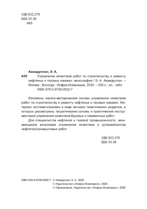 Если вы обнаружили ошибку в описании товара «Управление качеством работ по строительству и ремонту нефтяных и газовых скважин» (авторы: Ахмадуллин Эдуард Атласович), то выделите её мышкой и нажмите Ctrl+Enter. Спасибо, что помогаете нам стать лучше!