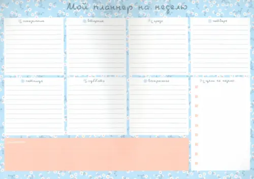 Блок со специальной линовкой на одну неделю из высококачественной белой бумаги плотностью 80 г/м2 с цветной печатью с одной стороны.