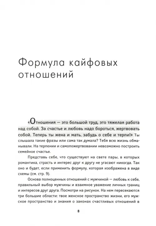 Здесь ты не встретишь банальных советов типа «Будь девочкой», «Не спорь с мужчиной», «Носи длинные юбки» — только проверенные рекомендации, применяя которые ты сможешь гармонизировать карьеру и любовь, встретить мужчину своей мечты или решить текущие проблемы в отношениях.