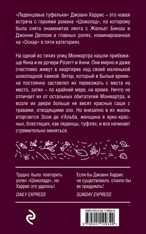 Если вы обнаружили ошибку в описании товара «Леденцовые туфельки» (авторы: Харрис Джоанн), то выделите её мышкой и нажмите Ctrl+Enter. Спасибо, что помогаете нам стать лучше!