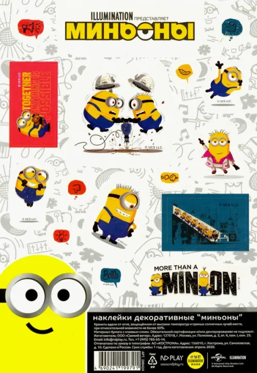 Наклейки декоративные бумажные А5 "Миньоны", набор №6