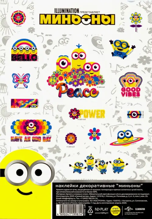 Наклейки декоративные бумажные А5 "Миньоны", набор №8