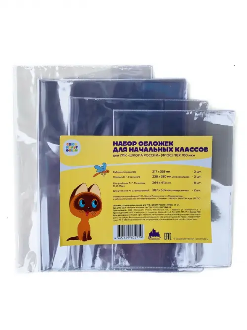 Набор из прозрачных обложек, хорошей плотности, рекомендован для УМК "Школа России".