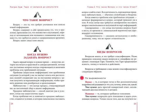 Вы узнаете, какие бывают вопросы (явные, уточняющие, простые, риторические) и как понять, что вопрос поставлен некорректно; как выбрать оптимальное время для разговора с картами; как трактовать ответы, в каком случае есть смысл задать уточняющий вопрос, а когда стоит отложить работу с Таро. Чтобы вы могли сразу перейти к диалогу с картами, автор приводит два расклада. Один из них поможет лучше понять характер и личность какого-либо человека, второй расклад подойдет для прояснения вопросов в любой сфере жизни - учеба, карьера, личные отношения, финансы и т.п.