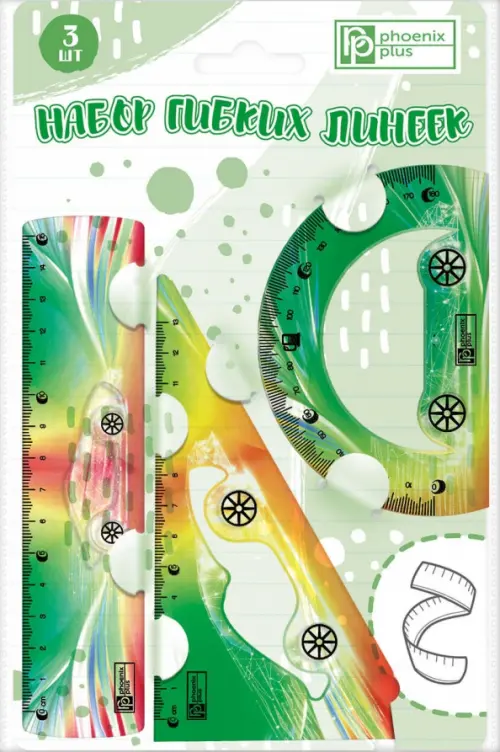Набор гибких линеек. Машины, зеленый, 3 штуки