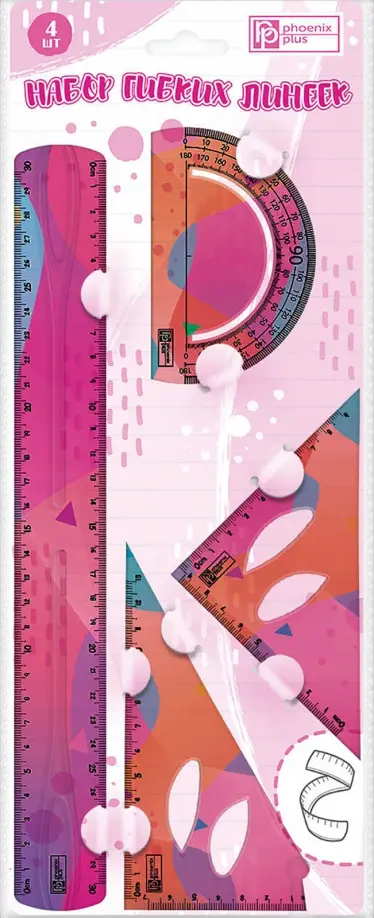 Набор гибких линеек, разноцветный, 4 штуки