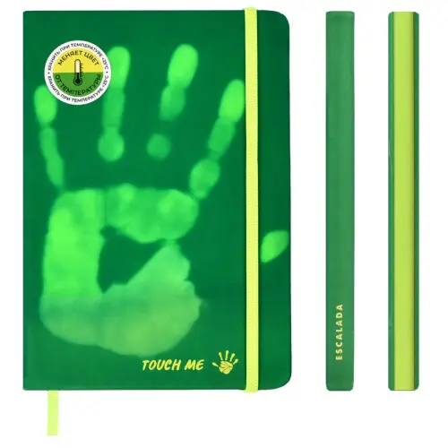 Записная книжка, А5, 96 листов, искусственная кожа Термохром, зеленый