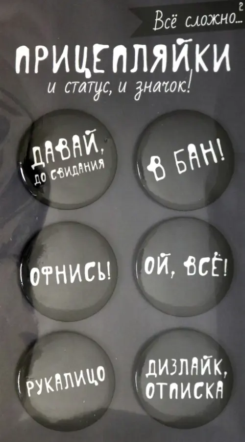 Значки закатные "Прицепляйки. Все сложно 2", 38 мм, 6 штуки
