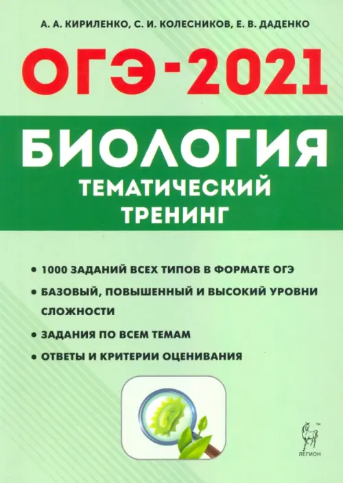 Если вы обнаружили ошибку в описании товара «Биология. ОГЭ 2021. 9 класс. Тематический тренинг» (авторы: Колесников Сергей Ильич, Кириленко Анастасия Анатольевна, Даденко Евгения Валерьевна), то выделите её мышкой и нажмите Ctrl+Enter. Спасибо, что помогаете нам стать лучше!