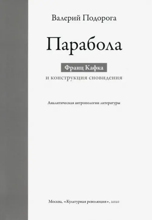 Парабола. Франц Кафка и конструкция сновидения. Аналитическая антропология литературы