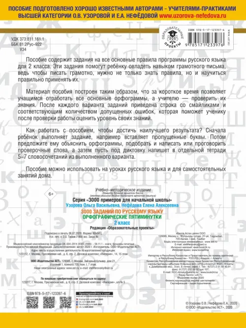 Если вы обнаружили ошибку в описании товара «Русский язык. 2 класс. 3000 заданий по русскому языку. Орфографические пятиминутки» (авторы: Нефёдова Елена Алексеевна, Узорова Ольга Васильевна), то выделите её мышкой и нажмите Ctrl+Enter. Спасибо, что помогаете нам стать лучше!
