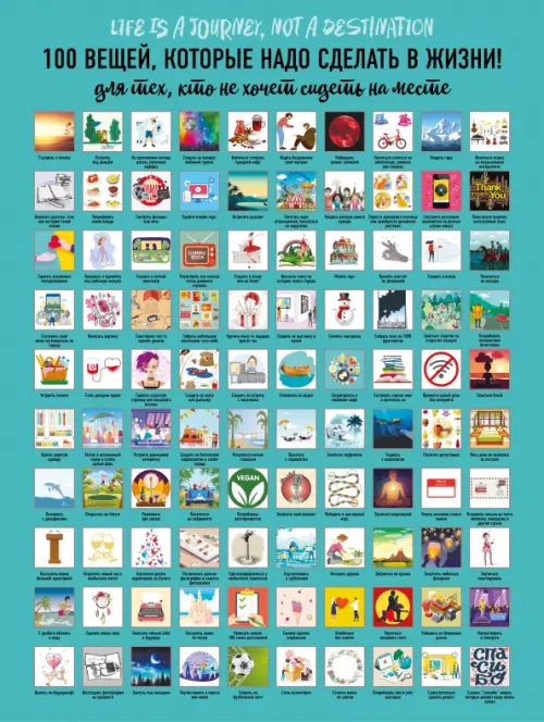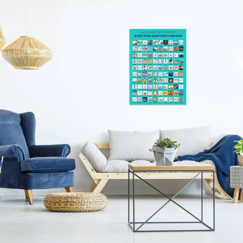 Жизнь так коротка, а вокруг столько всего, что вы еще не пробовали. Мы подготовили для вас плакат "100 вещей, которые нужно сделать в жизни!" Запишите свой подкаст, погуляйте под дождем или позавтракайте в любимом кафе. Здесь вы найдете много интересных идей: приятных, немного экстремальных (для любителей пощекотать нервы), расширяющих кругозор, вдохновляющих на путешествия, новые знакомства и многих других. Для удобства на плакате есть подписи под скретч-слоем, выбирайте то, чем хотите заняться сегодня, отправляйтесь в ваше индивидуальное приключение и стирайте скретч-слой по его завершении. Добавьте в вашу жизнь красок!