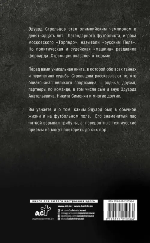 Перед вами уникальная книга, в которой обо всех тайнах перипетиях судьбы Стрельцова рассказывают те, кто близко знал великого спортсмена, – родные, друзья, партнеры по команде, в том числе сын и внук Эдуарда Анатольевича, Никита Симонян и многие другие.