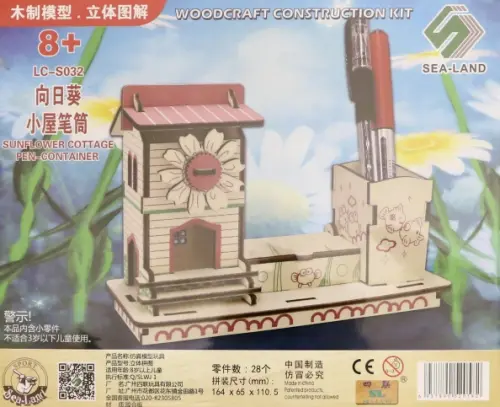 Сборная деревянная модель - подставка для ручек "Цветочный коттедж"