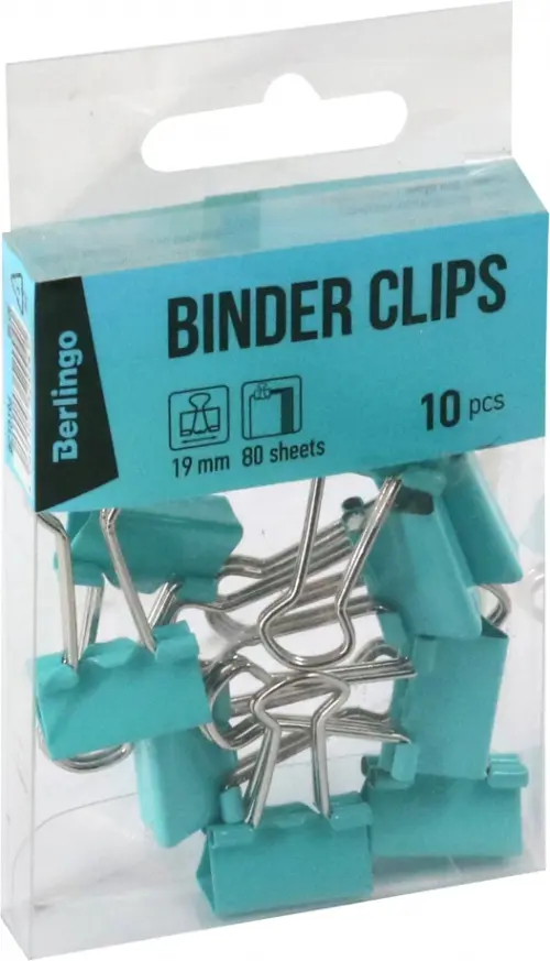 Зажимы для бумаг "Berlingo", 19 мм, голубые, 10 штук