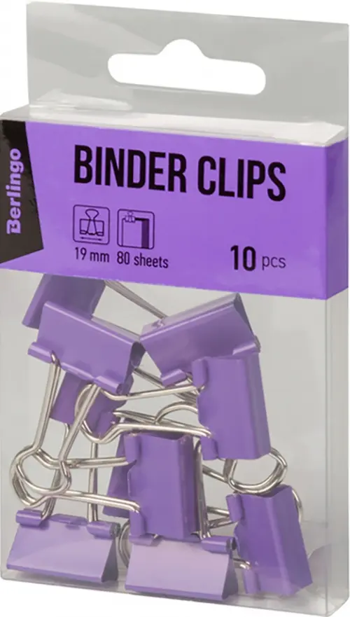 Зажимы для бумаг "Berlingo", 19 мм, фиолетовые, 10 штук