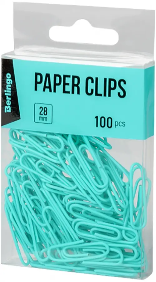 Скрепки "Berlingo", 28 мм, 100 штук, голубые