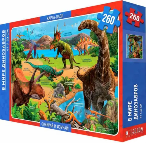 Карта-пазл. В мире динозавров, 260 элементов