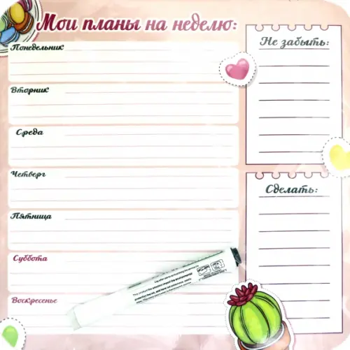 Планер магнитный "Мои планы на неделю", 298х298 мм